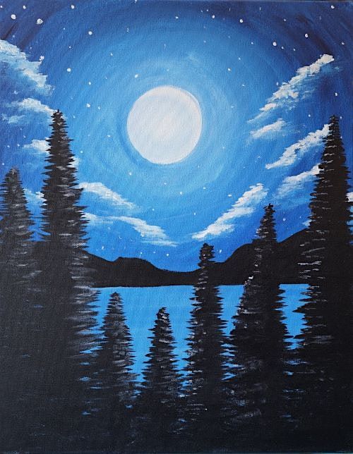 Paint this beautiful, Blue Moonrise, at this fun paint and sip painting