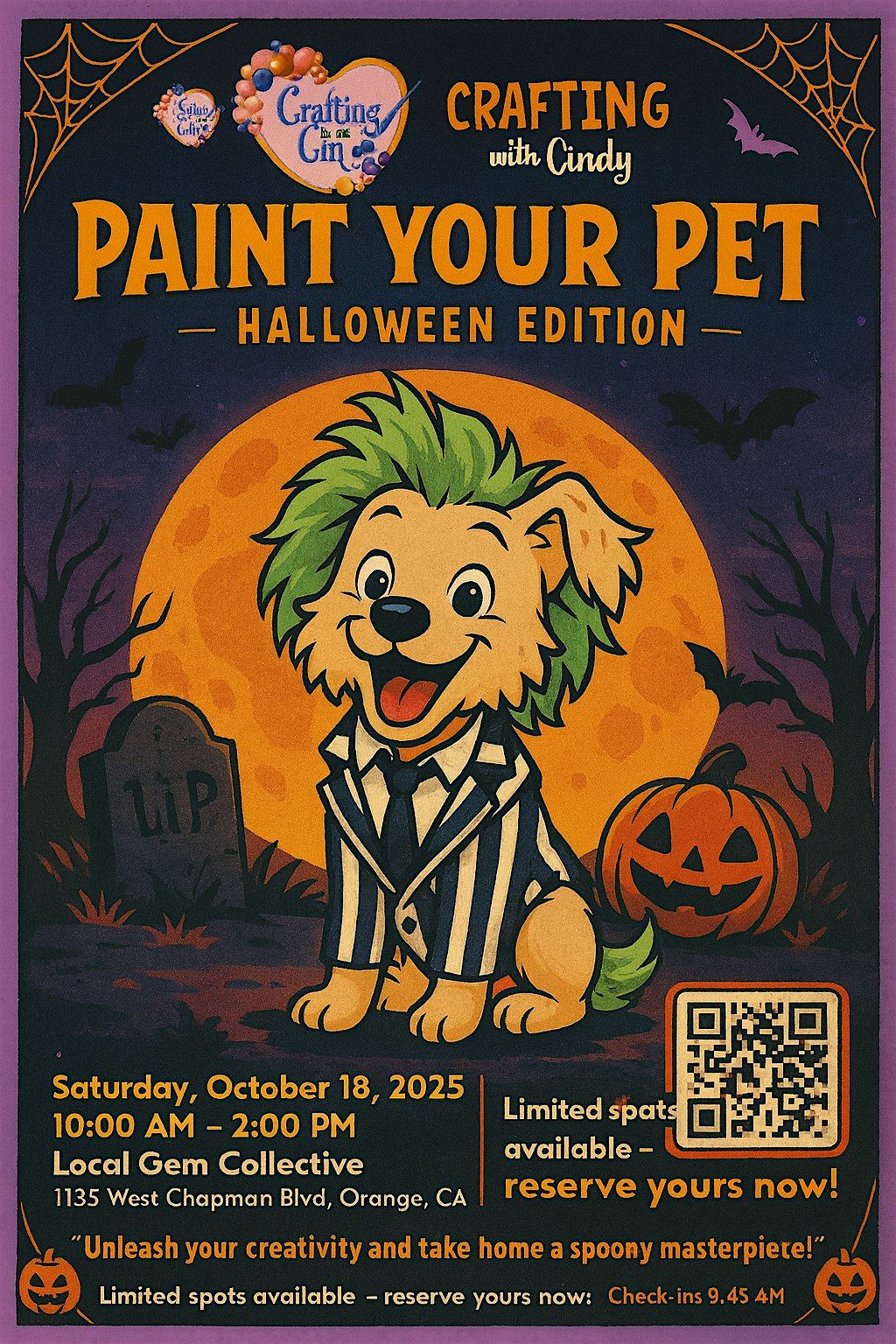 Reserve your ticket now and get ready to paint your pet in true Halloween style.