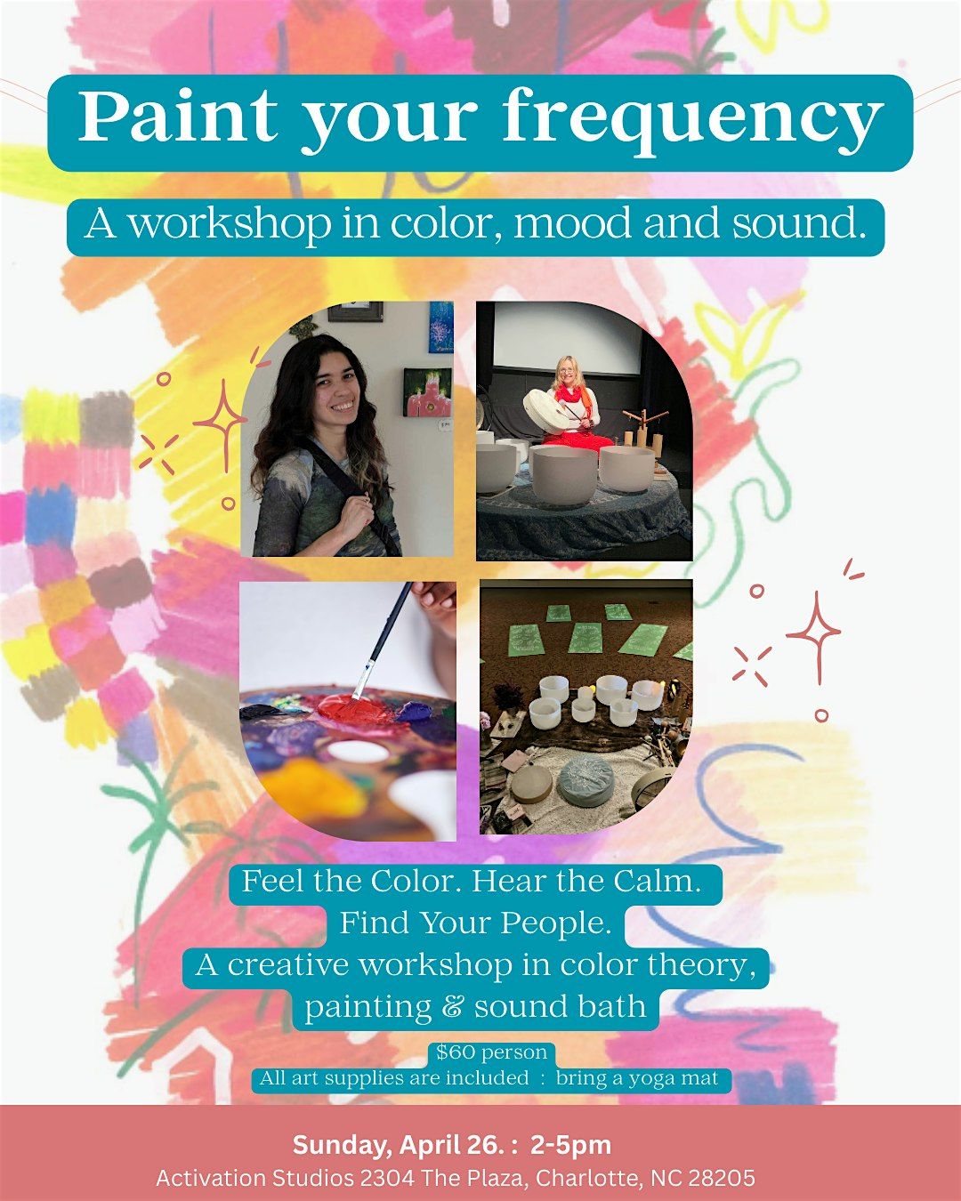 We open Paint Your Frequency the way all great creative sessions should begin — in stillness. A live sound bath washes over the room first, quieting the noise of the day and awakening something deeper. It's an invitation for your imagination to rise to the surface before a single brush touches canvas.