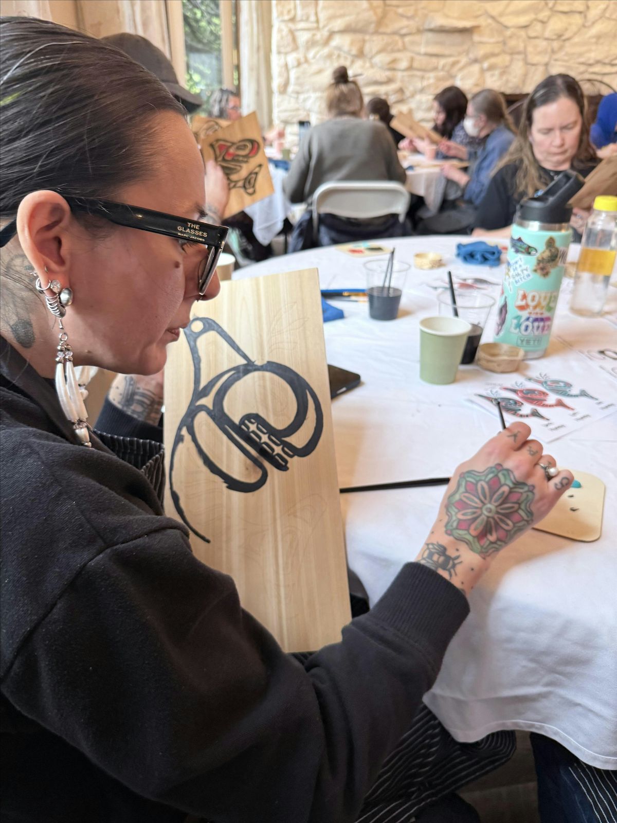 As you paint, sounds of traditional village music and running waters will surround you, drawing you closer to both your artwork and the vibrant native art culture around us. Savor a cup of wild herbal tea and smoked fish bites enhancing your connection to the Pacific Northwest.