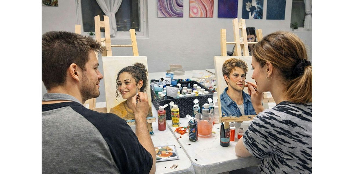 - The first 1.5 hours of the evening, you’ll have the chance to paint each other in a playful, lighthearted way no experience or perfection required! You will be guided with easy instructions, so everyone can relax, explore color and texture, and enjoy the process.