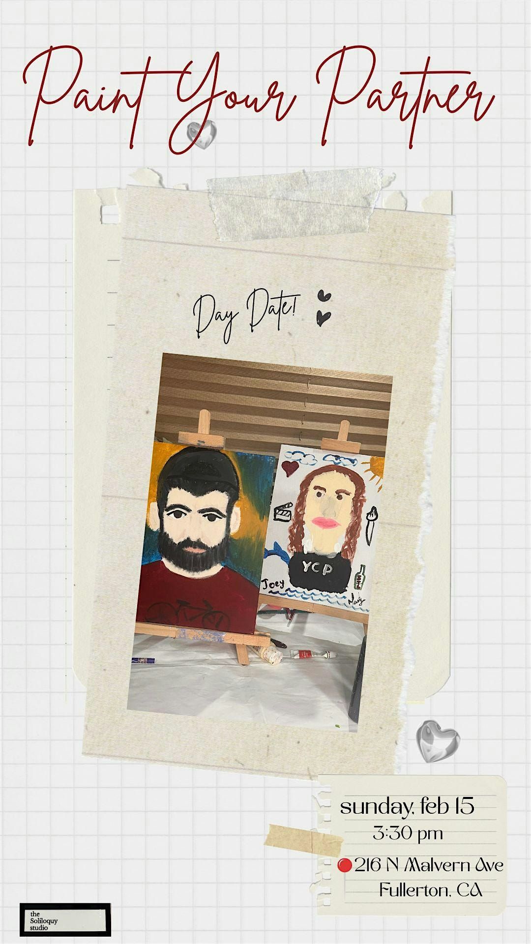 Come on in for a day date & paint your partner! Have fun and enjoy each other. Materials at your disposition, different mediums to choose.