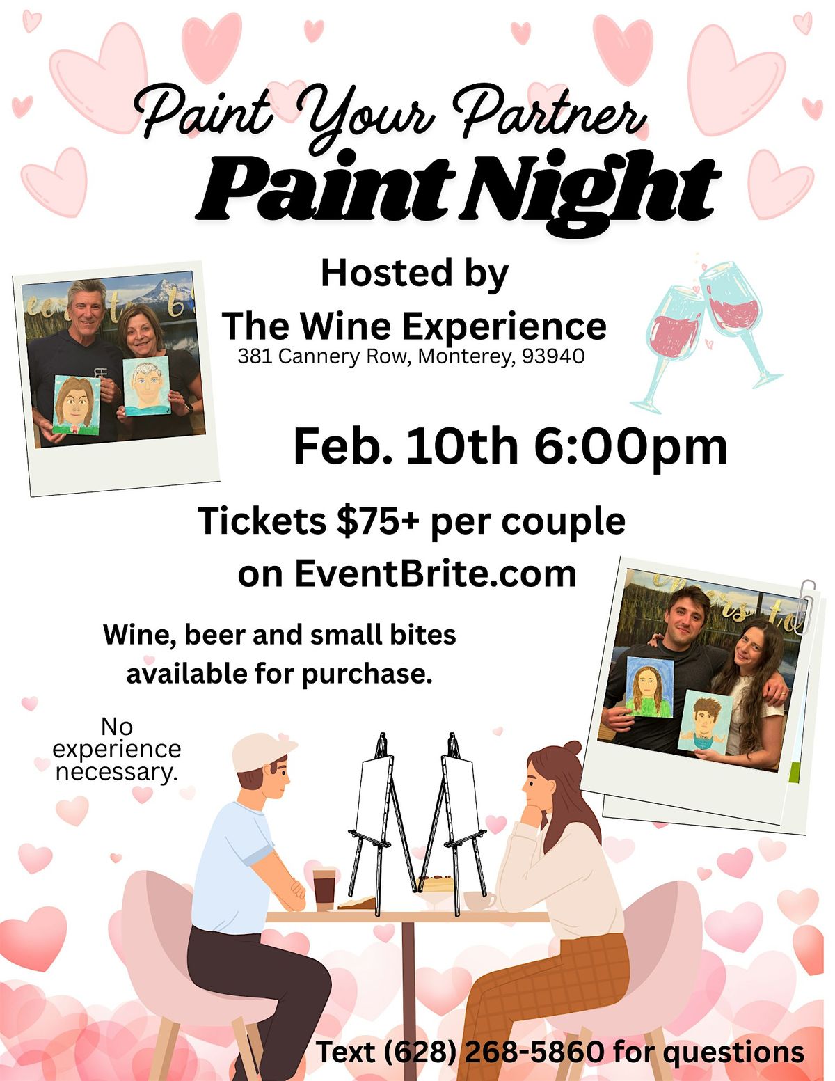 Get ready for a fun night of creativity and laughs! Join us for Paint Your Partner Paint Night, where you and your favorite person can unleash your inner artists and paint each other's portraits. No experience needed β just come with an open mind and ready to have a blast. Bring your partner, friend, or date and make some colorful memories!