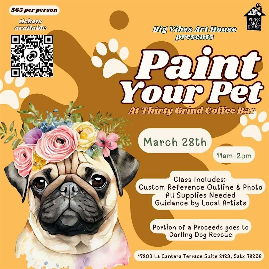 On March 28th from 11AM–2PM, we’re turning your furry bestie into a masterpiece. Send us your favorite photo of your pet and we’ll have a custom reference outline ready for you — so you can focus on painting those sweet eyes, goofy smiles, and all that personality.