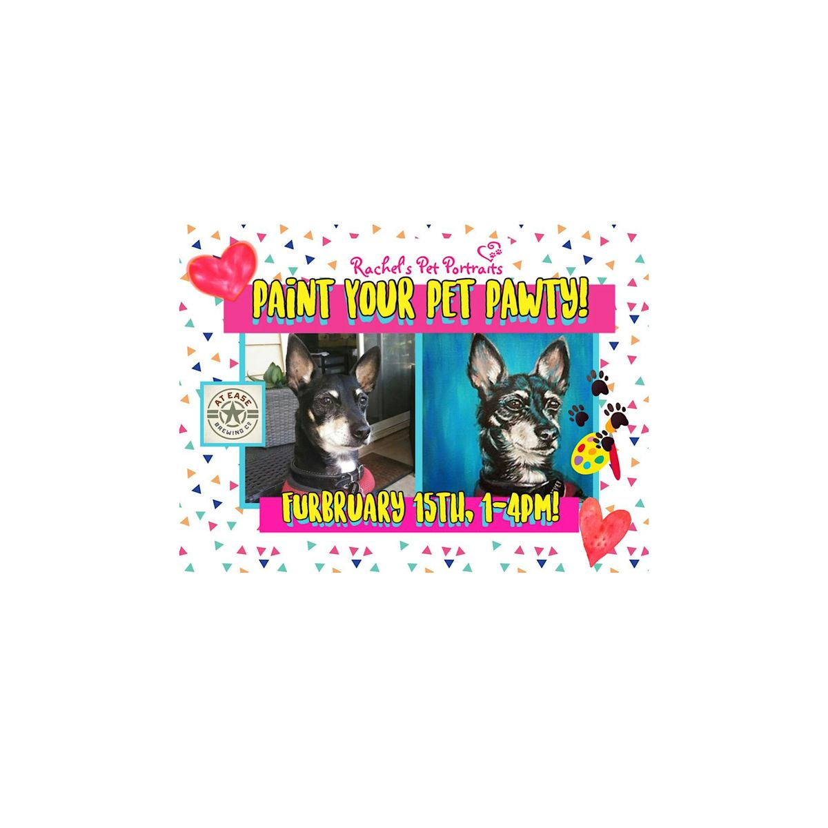 ARE YOU READY this FURbruary 🐾❤️ to have an unFURgettable time painting your FURbaby onto canvas while making new friends at At Ease Brewing Co.!🐾🎨