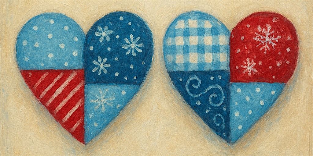 Create a set of adorable winter-themed patchwork hearts that look like they were stitched together from cozy sweaters and handmade quilts! In this easy and relaxing acrylic painting class, you’ll design four hearts using playful winter patterns like snowflakes, dots, stripes and swirls in any colors you choose.