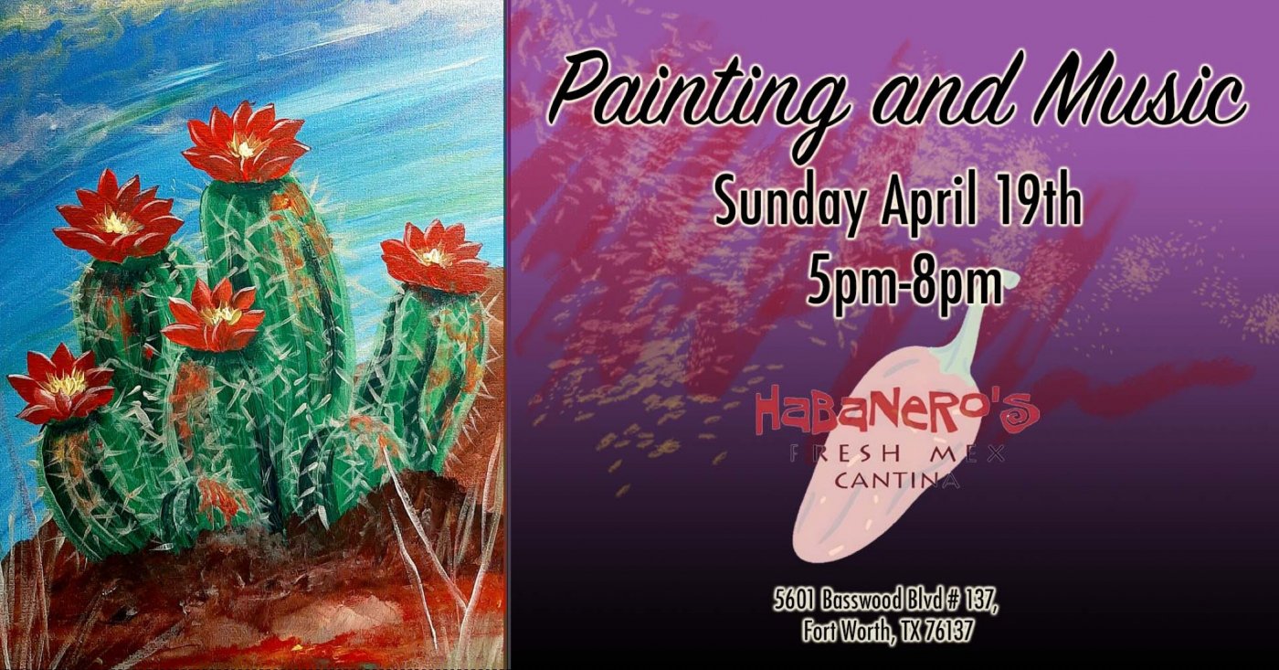 Paint your very own unique version of this gorgeous Claret Cactus painting, while listening to an incredibly talented local musician spinning unique tunes while you sip on a cool margarita in a fun and relaxed atmosphere.