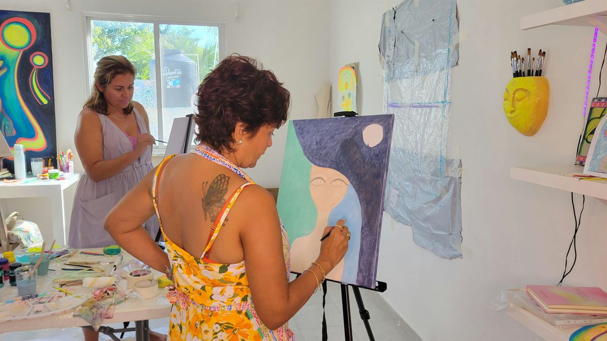 Painting Class at Casa CORA is an intimate 3-hour painting experience held in the private studio of artist Corinna Carrara in Tulum. This class is designed for those who wish to slow down, connect with their creativity, and paint in a real artist’s space, guided step by step through the process.