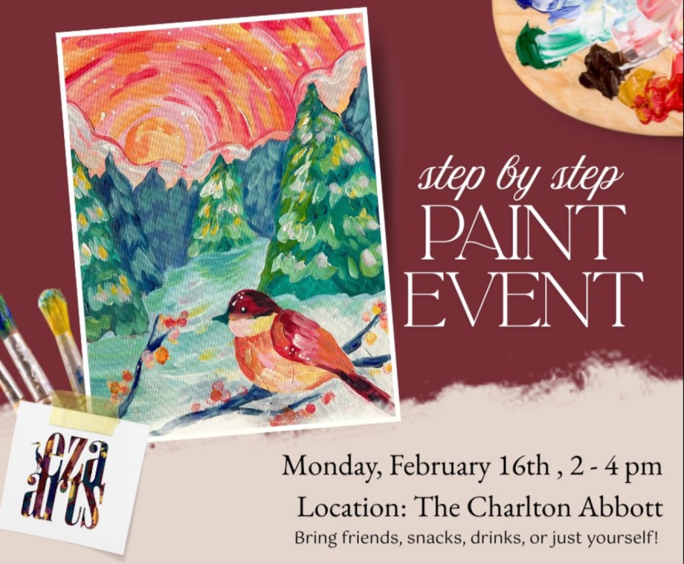 Warm up your winter with color! Join us on President's Day, for a fun, step-by-step acrylic paint event where you’ll create a vibrant, landscape on canvas. Guided instruction makes it easy and enjoyable, no experience needed. We’ll use bright, expressive colors and a painterly style to bring warmth and life to your painting. Come relax, get creative, and chase away the winter chill with art!