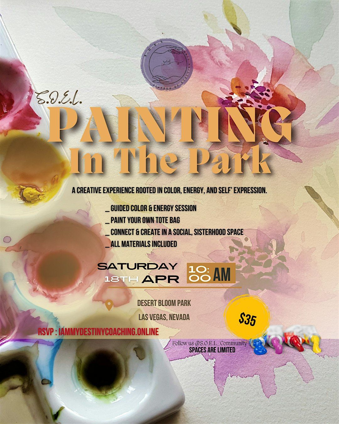 Join us for Painting in the Park, an awesome in-person event where you can dive into a world of color, energy, and self-expression. Whether you're a seasoned artist or just want to have some fun, this experience is all about letting your creativity flow while enjoying the great outdoors. Bring your vibes and get ready to express yourself like never before!