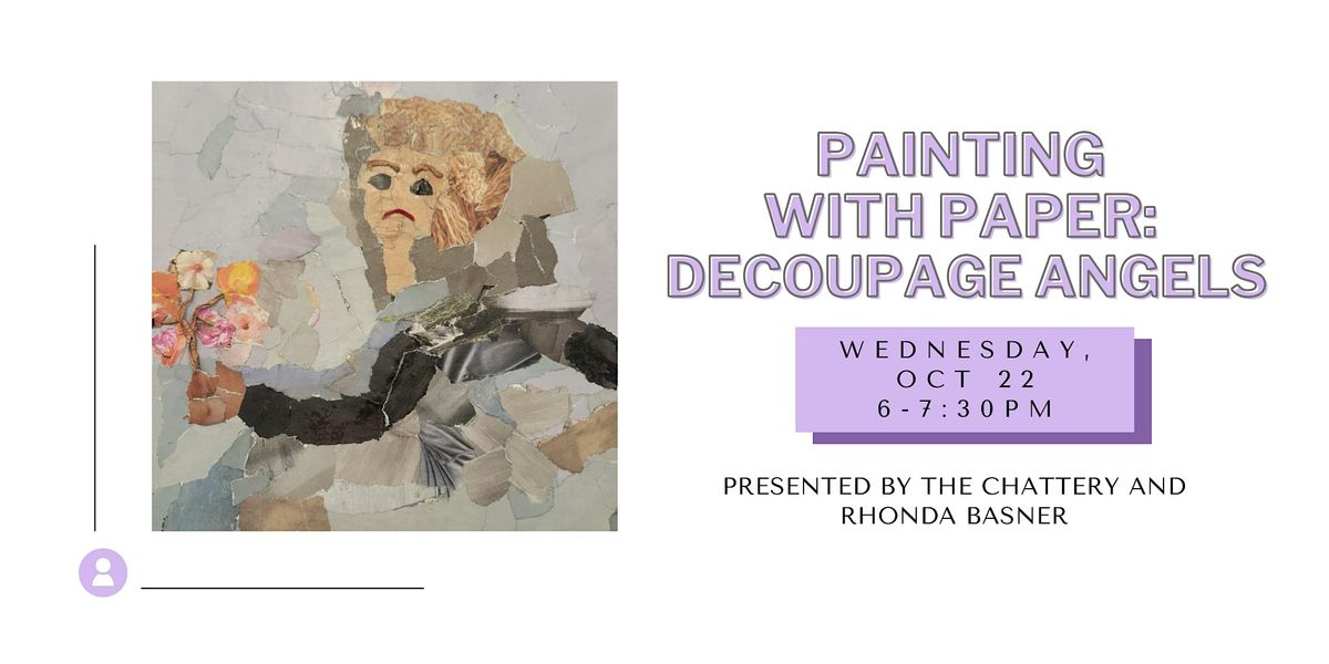 “Decoupage,” meaning “cutting out” in French, is the art of transforming ordinary surfaces with cut paper and glue. In this hands-on class, you’ll learn how to layer, arrange, and seal paper to create depth, texture, and beauty—essentially, painting with paper!