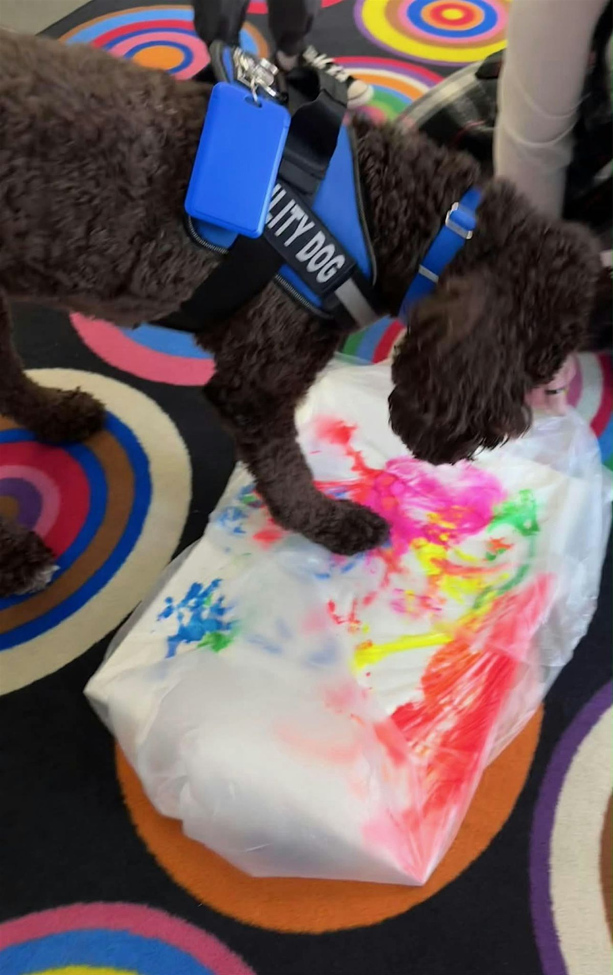 Join Canines for Change for a one-of-a-kind creative experience where art, animals, and advocacy come together. At Painting with Paws, our dogs in training take the lead—creating each piece of artwork themselves with guidance from their handlers. From paw prints to playful strokes, every painting is a true collaboration between canine artist and human supporter.