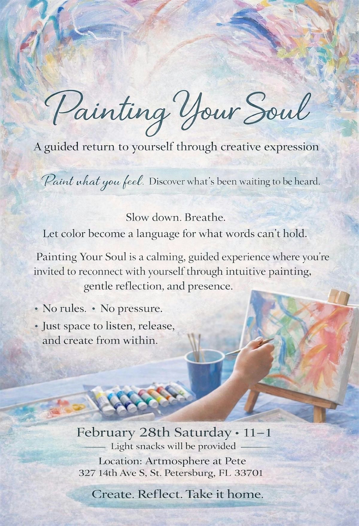 Karen has created a thoughtfully curated Painting Your Soul Kit—a kit she normally offers at a much higher value. For this workshop, the kit is included, and you’ll take it home with you, so the experience doesn’t end when the class does. You’ll leave with tools you can continue using for reflection, emotional release, and creative connection long after the workshop.