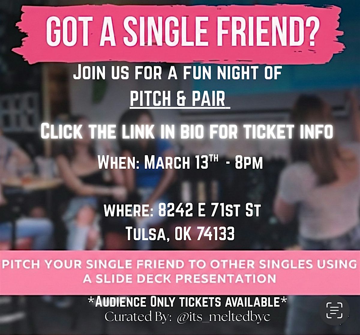 Have a single friend who's a catch? Pitch them in a fun slide deck/canva slide to a room of singles. Play matchmaker-spark love.About this Event