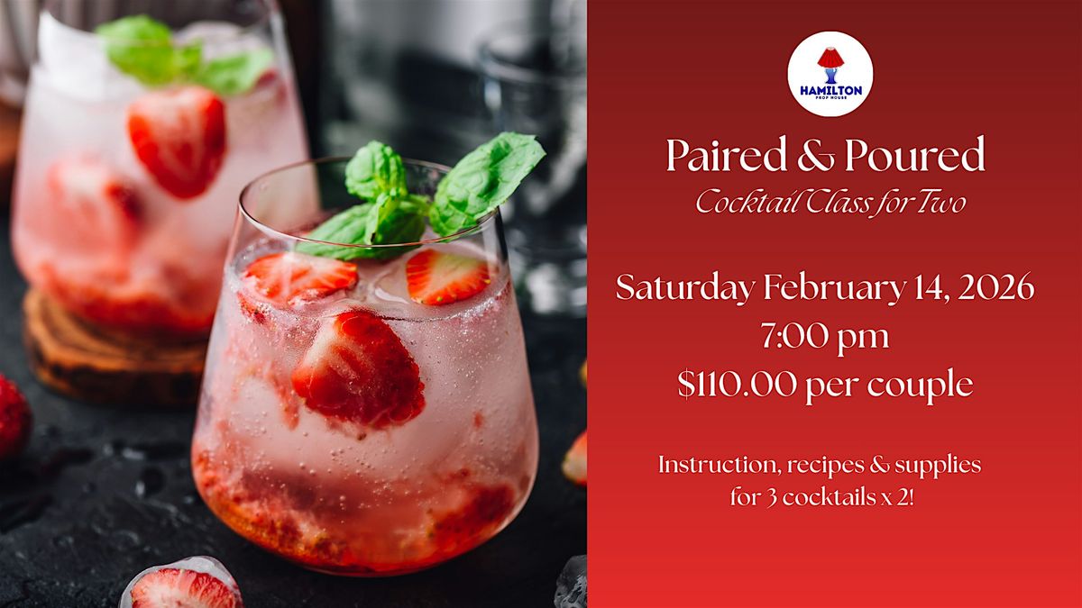 Celebrate Valentine’s Day the Hamilton Prop House way — with a spirited evening of mixology, creativity and connection. Paired & Poured is a cocktail class designed for two, featuring three signature Valentine’s-inspired cocktails, complete with guided instruction, recipes and all supplies included. (3 cocktails per person)