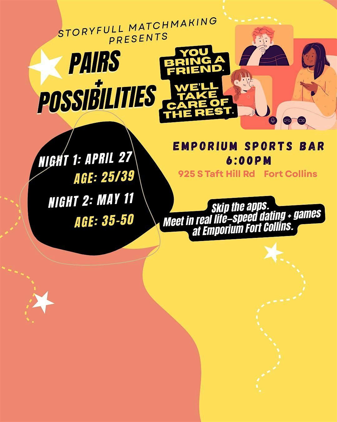 Pairs + Possibilities : Singles Night ( 25-39)|Bring a Friend Encouraged