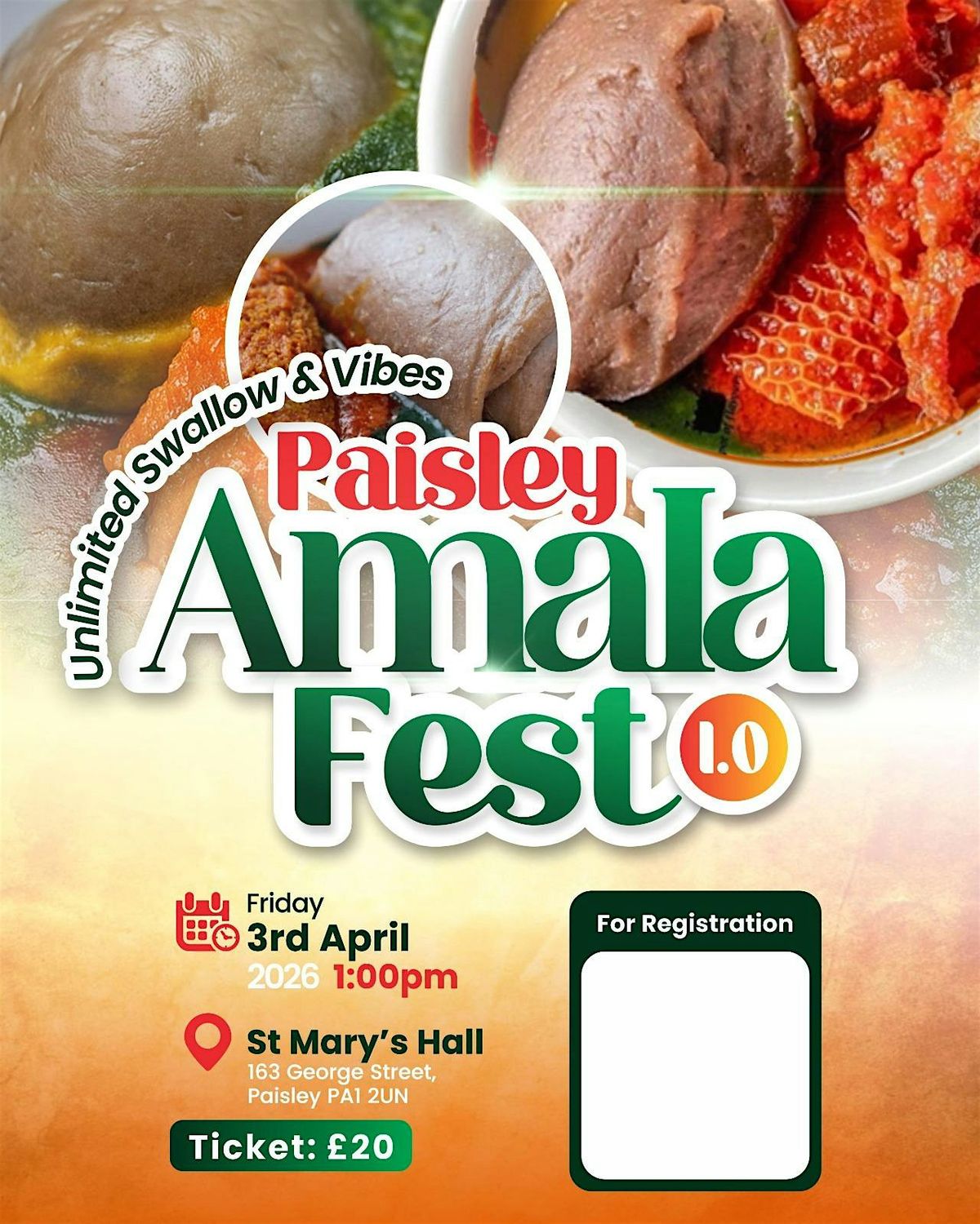Get ready for an unforgettable afternoon of culture, food, and good vibes! The Paisley Amala Festival 1.0 is a celebration of Yoruba/Nigerian heritage right in the heart of Scotland. Whether you’re part of the diaspora or simply curious about the culture, this is the event for you. Come and give yourself that treat during the Easter Season!!!