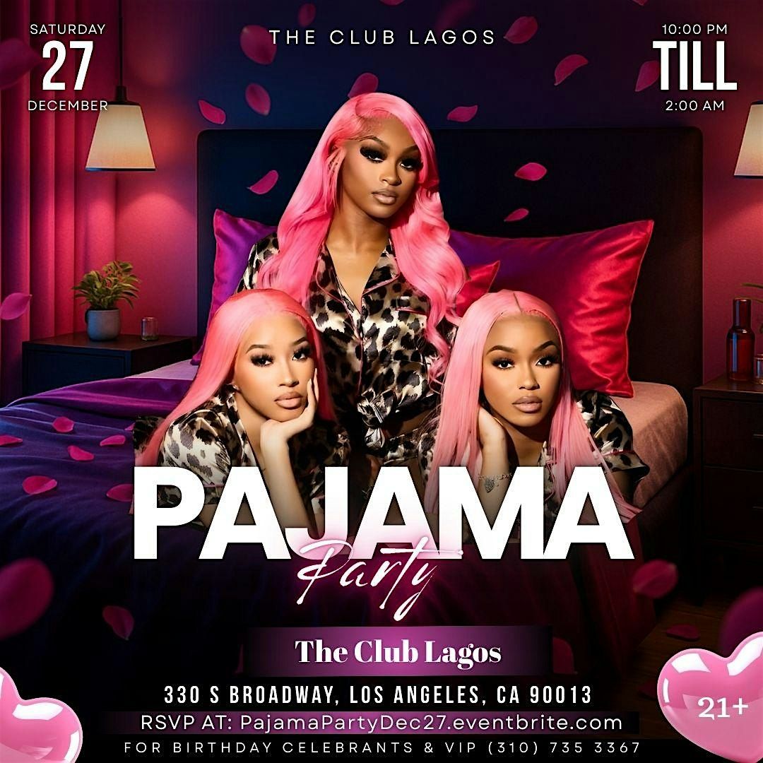 Welcome to the Pajama Party- Dec 27! Get ready to have a blast at 330 S Broadway, Los Angeles, CA 90013 on December 27, 2025 at 10:00 PM (Pacific Time). It's going to be a night full of fun, laughter, and great memories. Come in your comfiest pajamas and get ready to dance the night away. Don't miss out on this amazing event!