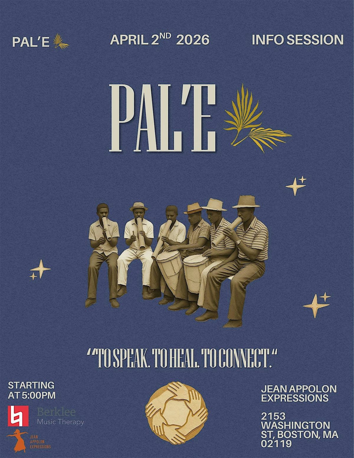 Pal’e is a community-rooted healing initiative based in Roxbury, Boston, dedicated to restoring connection through culture, tradition, and collective care. Grounded in the belief that healing already exists within the community, Pal’e creates spaces where music, movement, art, and voice are used as tools for expression, reflection, and wellness. Through collaboration with local artists, culture bearers, and therapists in dance, visual art, and speech practices, Pal’e offers culturally affirming experiences that support emotional awareness, self-regulation, and social connection.
