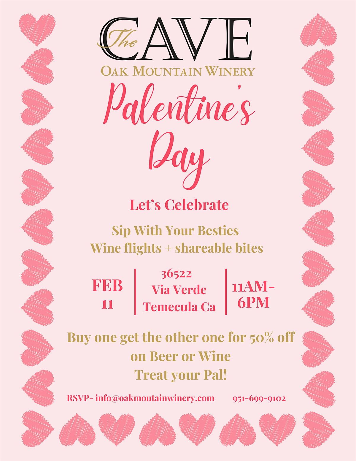 Sip With Your Besties Wine flights + shareable bites . Buy one get the other one for 50% off on Beer or Wine