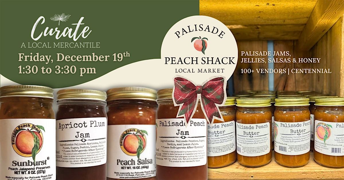 Join us from 1:30 to 3:30 pm on Friday, December 19th as Palisade Peach Shack brings their incredible selection of local jams, preserves, salsas, and honey—all made straight from the orchards and farms of beautiful Palisade, Colorado. 🍑