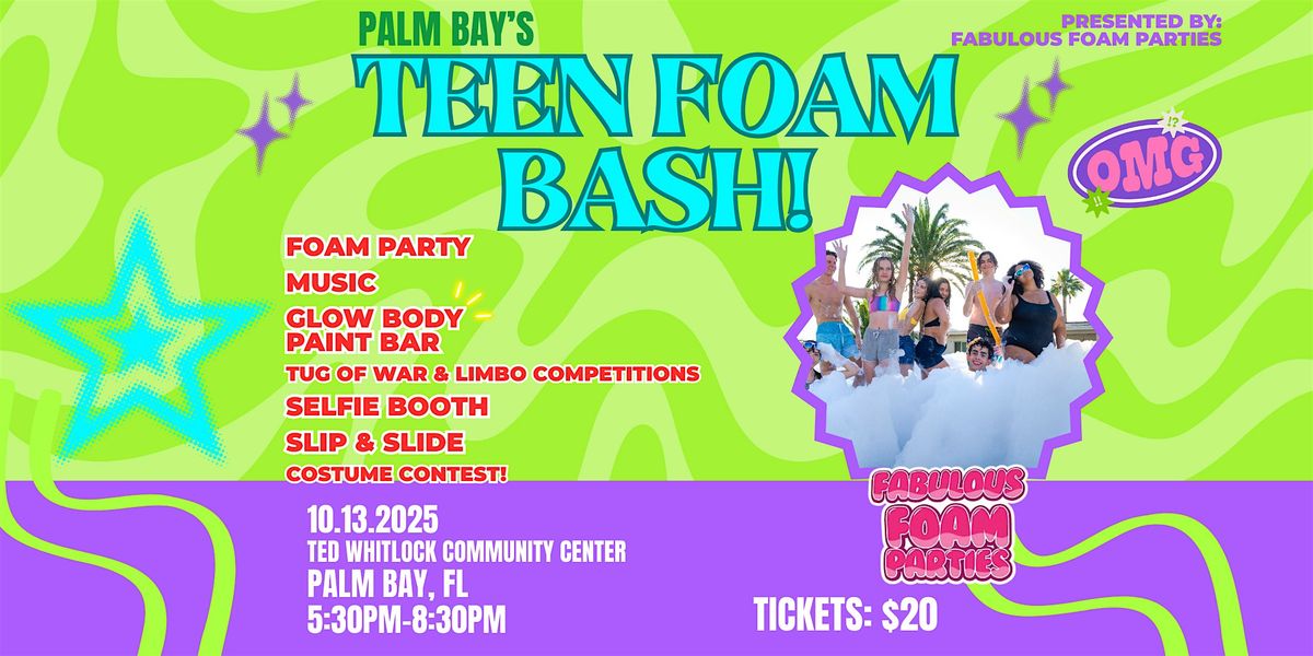 Fabulous Foam Parties is bringing the ULTIMATE teen event to Palm Bay โ and you donโt want to miss it! Join us on Sunday, October 13th from 5:30 PM โ 8:30 PM at the Ted Whitlock Community Center for a night packed with energy, music, and FOAM! ๐โจ