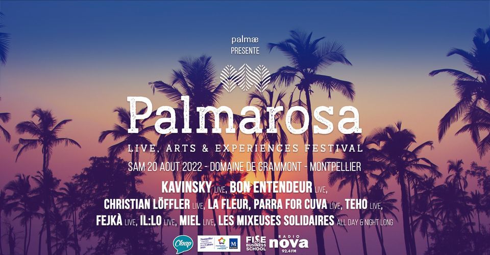 Palmæ en partenariat avec la Ville de Montpellier & la Métropole, sont heureux de vous proposer Palmarosa Festival :? Samedi 20 août 2022, de 11h à 2h