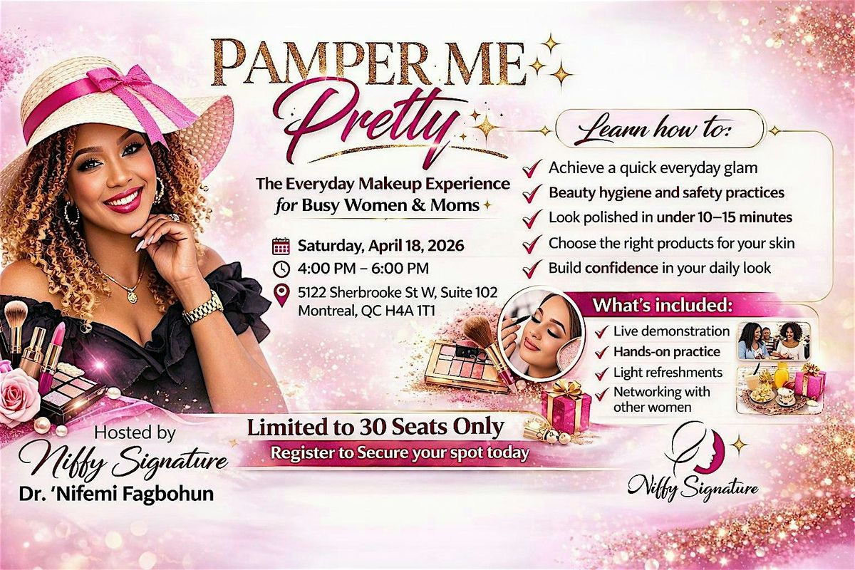 🌸 Join us for 'Pamper Me Pretty', a hands-on makeup experience designed to help you master a quick, polished everyday look that enhances your natural beauty — effortlessly. This is more than just a makeup class — it’s a confidence-boosting experience where beauty meets simplicity, safety, and self-care. Whether you’re heading to work, running errands, attending events, or simply want to feel good in your skin daily, this session will equip you with practical, easy-to-follow techniques you can use immediately. Look polished, confident, and radiant — in just 10–15 minutes a day. 💡