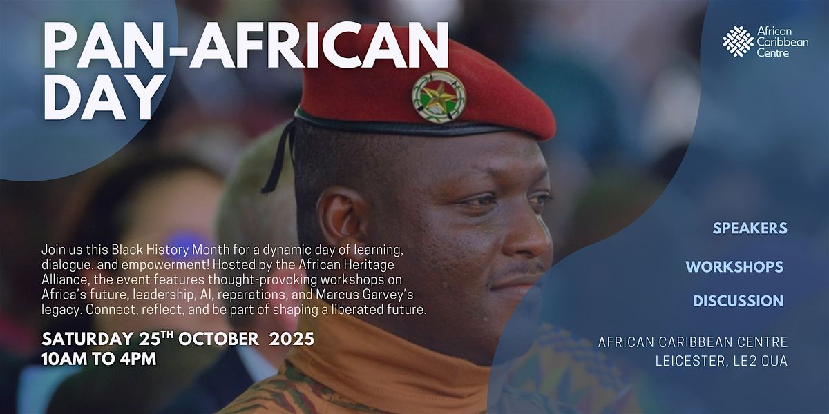 Join us for Pan African Day, a powerful Black History Month event hosted by the African Heritage Alliance. This one-day gathering will explore urgent and inspiring topics affecting Africa and its global diaspora through engaging workshops, keynote talks, and open discussions.