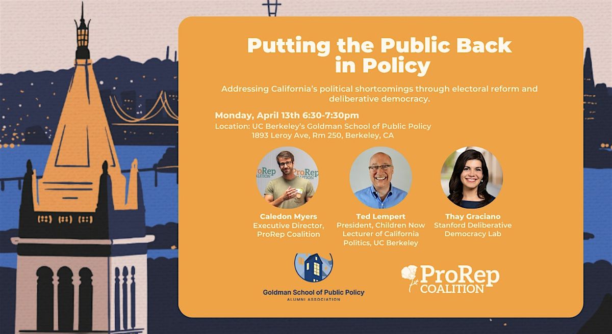 Join scholars, practitioners, and democracy reform leaders for a discussion about how California can move beyond the limitations of winner-take-all elections and build a more responsive, inclusive political system — one that truly puts the public back in policy.