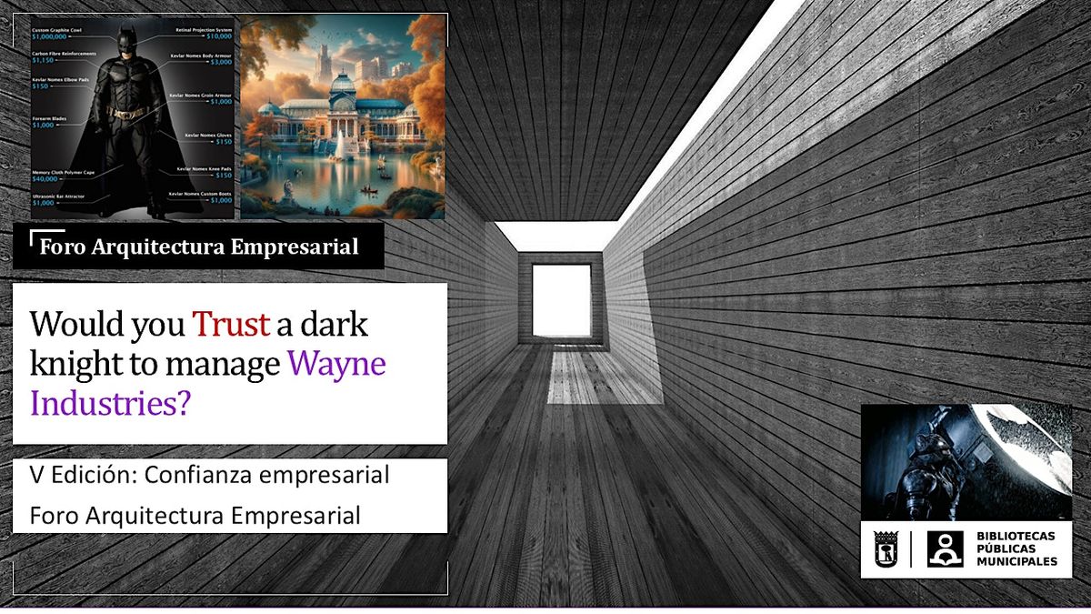 ¿Confiarías en el caballero oscuro 🦇 para gestionar Industrias Wayne 🏢? Ambientados en la trilogía, compartiremos experiencias y estrategias para implementar un gobierno corporativo, la gestion de riesgos, y el cumplimiento normativo 🏦 . El evento se llevará a cabo en la Biblioteca Pública del Parque del Retiro 🏞️ (Eugenio Trías), un lugar inspirador para discutir ideas ✨.