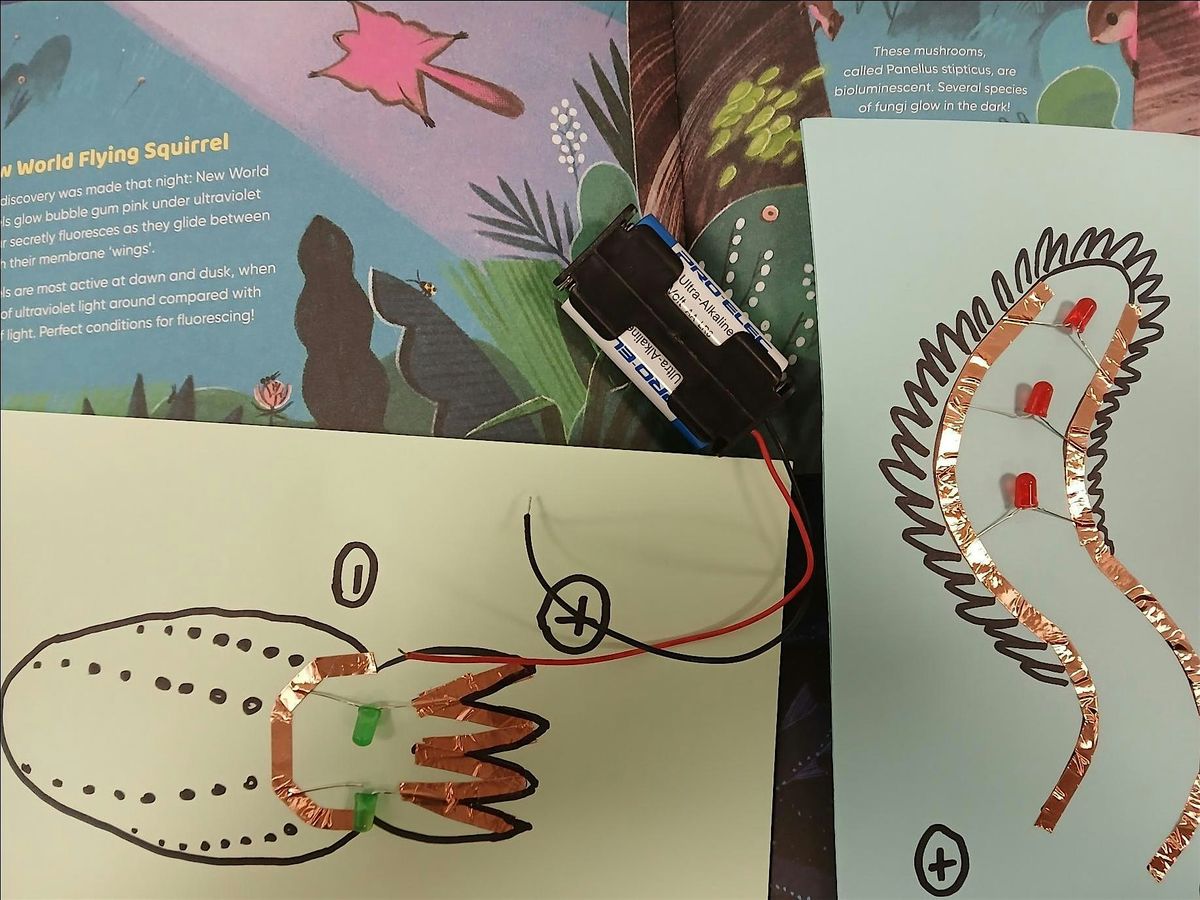 In this hands-on workshop, children will explore how electricity flows by creating simple paper circuits. Using copper tape, LEDs, and batteries, they’ll design and build their own light-up paper designs while learning how circuits work.
