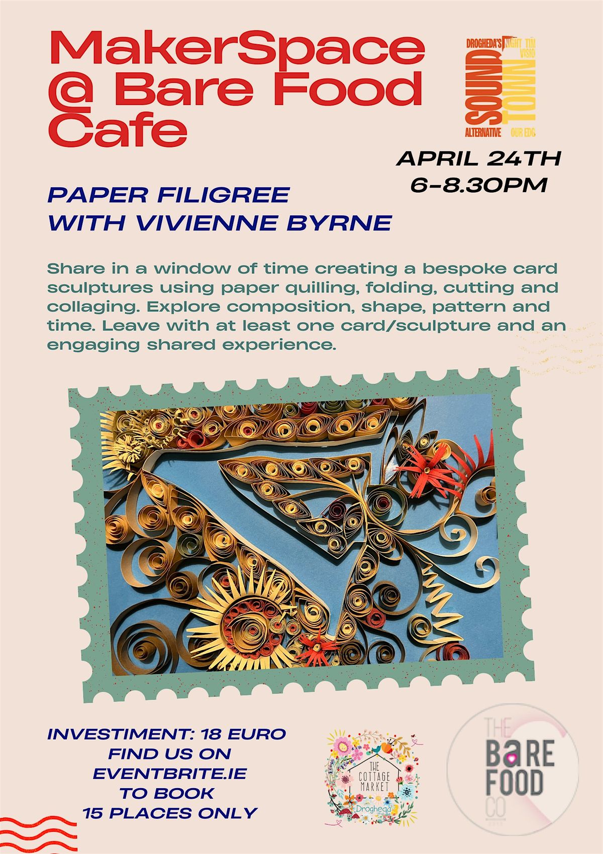 During the workshop we will share a window of time creating a bespoke cards / sculpture using paper quilling, folding, cutting and collage