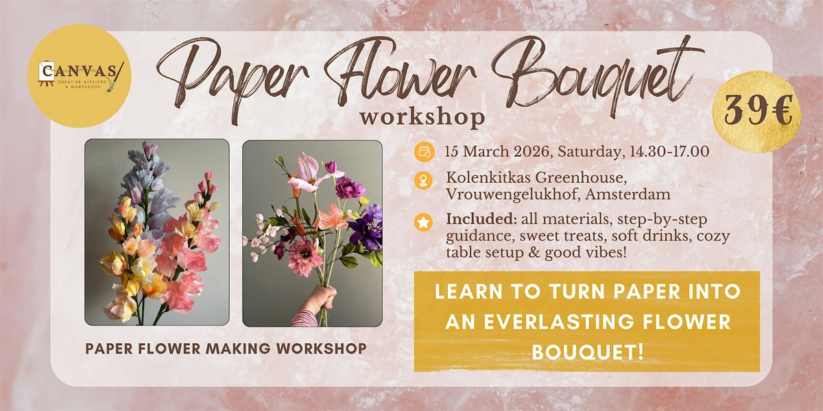 Join us for a calm and elegant Paper Flower Bouquet Workshop, where you’ll learn how to transform paper into a refined, long-lasting floral arrangement. This workshop is designed for adults who enjoy working with their hands in a relaxed, thoughtfully styled setting.