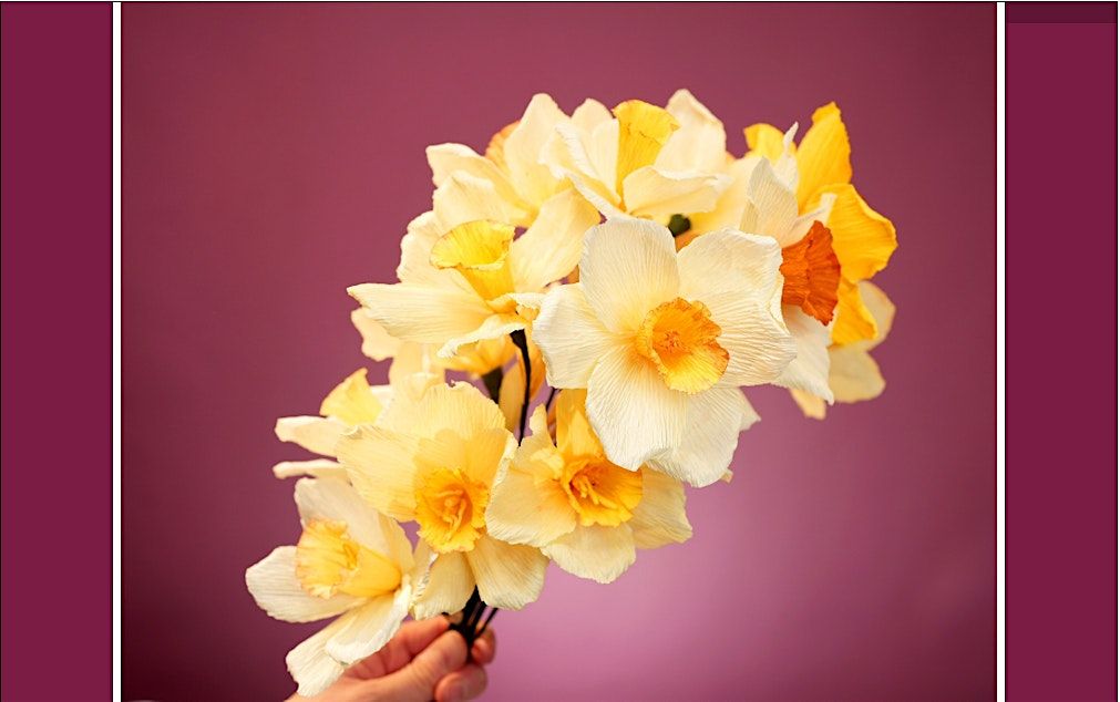 Join Jen from Edinburgh Paper Flowers for a mindful morning of paper floristry. You will learn how to craft wonderful crepe paper daffodils from quality 180g Italian crepe paper.