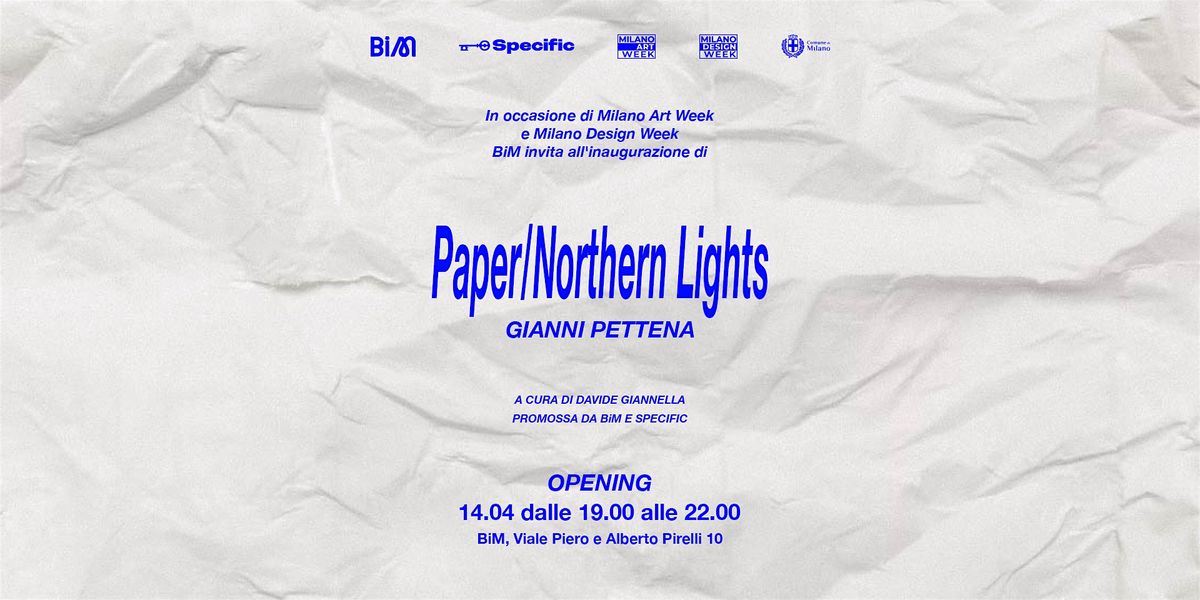 In occasione di Milano Art Week e Milano Design Week, martedì 14 aprile dalle 19.00, BiM e Specific invitano all'opening di Paper/Northern Lights, installazione di Gianni Pettena a cura di Davide Giannella.