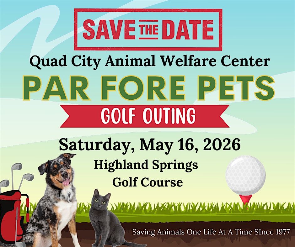 Get ready to hit the greens for our Par Fore Pets Golf Outing proudly sponsored by WQAD . This tail wagging good time is one of our favorite events of the year and you will not want to miss it. Teams go on sale Friday, April 3 and the cost is $300.00 per team. Your entry fee includes one round of golf with a cart, lunch, one non alcoholic drink coupon, a swag bag, and participation in three fun contests including Longest Drive, Longest Putt, and the Closest to the Hole Challenge. Whether you are a seasoned golfer or just out for a great day with friends, this event is all about fun, laughter, and supporting the animals at QCAWC.