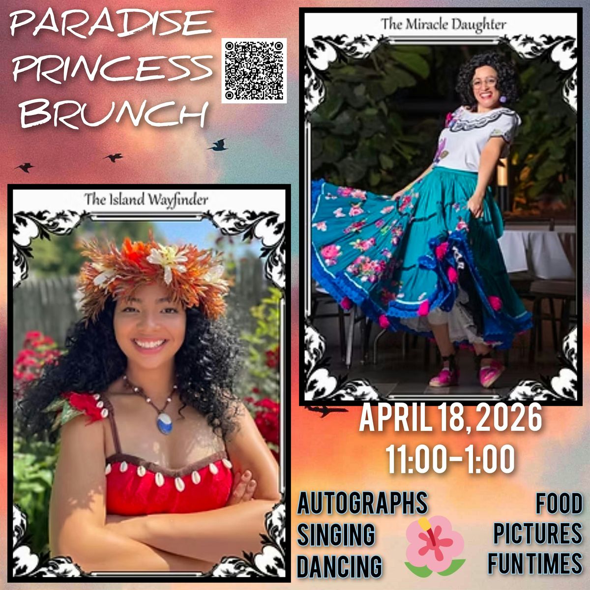 Step into a world of sparkle and fun at our in-person Royal Spring Princess Brunch. It's the perfect chance to dress up, enjoy a delicious brunch, and make magical memories with Moana & Mirabel. Whether you're a princess or just love the royal vibe, this brunch is all about good times and springtime joy. Come thirsty for fun and hungry for tasty bites! Don't forget to dress up as one of your favorite princesses or one of our guests of honor!