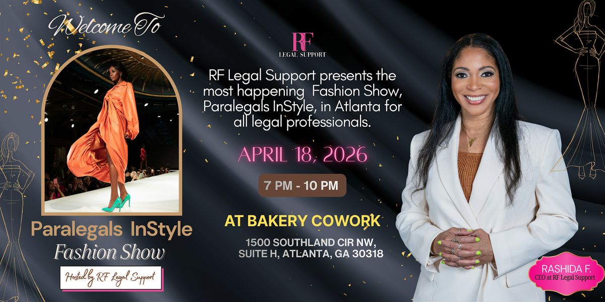Join us for an exclusive evening of high fashion, presented and performed by the paralegals, on 📅 Date: April 18, 2026 |🕖 Time: 7–10 PM ET |📍 Location: A Bakery Cowork, 1500 Southland Cir NW, Suite HAtlanta, GA 30318. There will be small bites and drinks for the guests.
