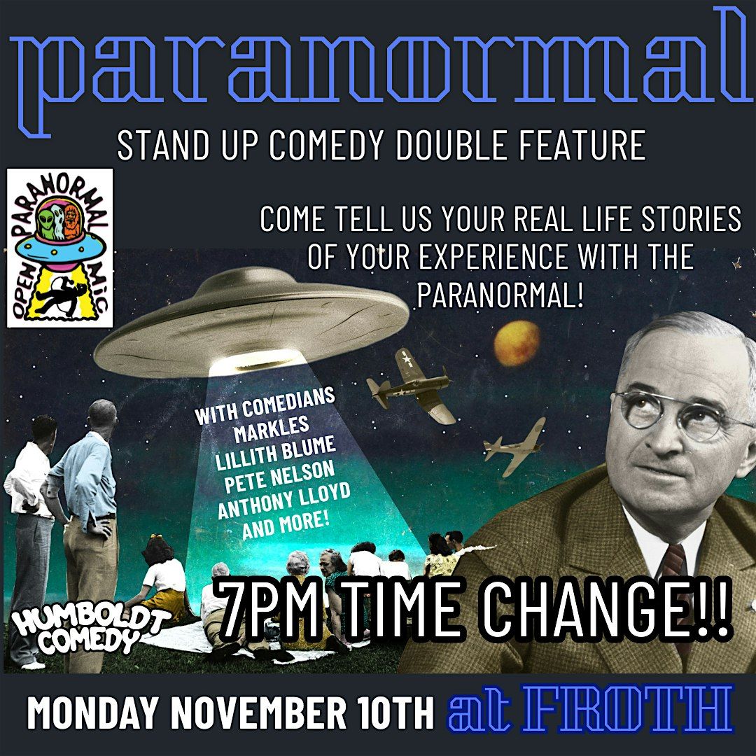 Paranormal Open Mic (@paranormalopenmic) is a weekly storytelling event at Froth in Arcata where community members are invited to tell their real life stories of the unexplained. Stories must be from your own true experiences, not under the influence of substances! We have a panel of comedians, ghost hunters, and other enthusiasts then interview you, and engage in your experience. These panelists are instructed to treat all storytellers with respect and acknowledgement that these stories are real. Various slide presentations are also made on the projector about different paranormal or unexplained themes and subjects that are also discussed. Stories are expected to be kept relatively brief, under 7 minutes... Come watch the event and support these unique individuals, this could happen to you! Created by Comedian Pete Nelson.