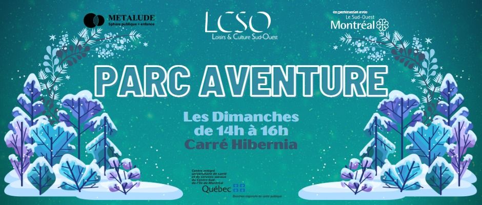 Même l'hiver, les dimanches au parc Hibernia, c'est le Parc Aventure ! Le Parc Aventure, c'est un cadre sûr et encadré où vos enfants pourront faire l'expérience du jeu libre en utilisant l'environnement pour s'amuser, créer et explorer. Une méthode de jeu qui améliore la sociabilité de l'enfant, sa créativité et son autonomie.