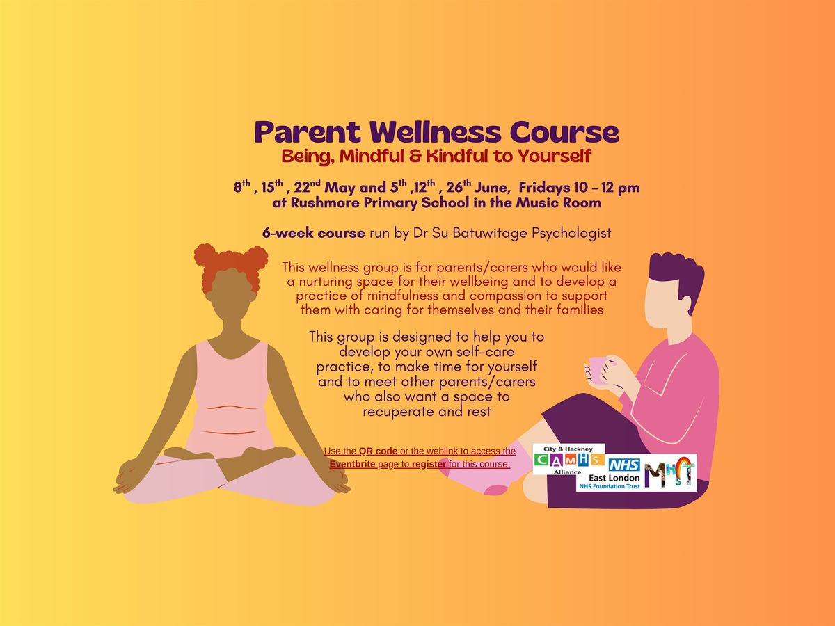 Welcome to the 6-week Parent Wellness Course - Being, Mindful & Kindful to Yourself! Join us for a nurturing experience at Rushmore Primary School, on Friday mornings, 10 am - 12 pm, starting May 8th, 15th, 22nd and June 5th,12th, 26th