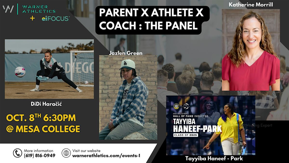 Welcome to Parent x Athlete x Coach: The Panel event, located at San Diego Mesa College! Join us on October 8, 2025 at 6:30 PM (Pacific Time) for an exciting evening. This event is all about our athletes and their support systems. We're thrilled to present our dynamic guest speaker panel to share their experiences in athletics and beyond - with parents, athletes, and coaches. Let's learn from our esteemed guests and grow together. Don't miss out on this opportunity to connect with like-minded individuals. See you there!