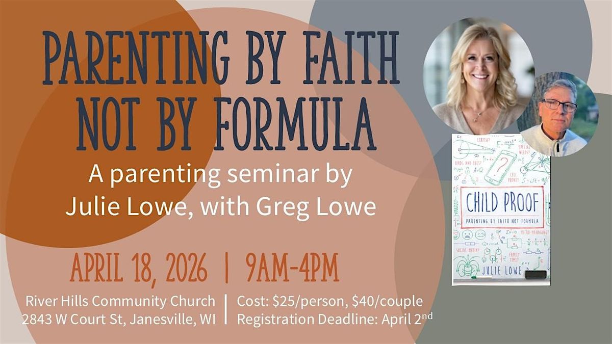 River Hills Community Church is thrilled to be bringing in Julie Lowe, with Greg Lowe to give their parenting seminar based on Julie's book Childproof: Parenting By Faith Not Formula.