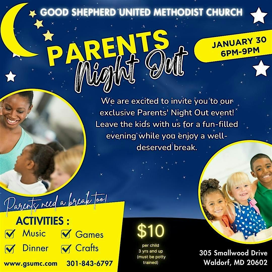 Parents, you deserve a night off! Join us for a fun and safe Parents’ Night Out at Good Shepherd United Methodist Church on Thursday, January 30, from 6:00–9:00 PM.