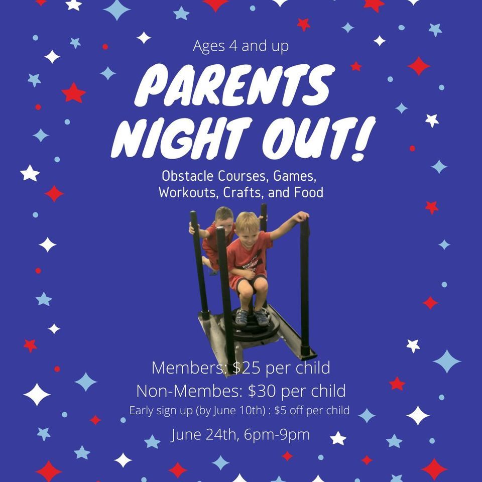 Sorry parents-kids only!! Drop your kids off for a night of games, crafts, workouts, and food!