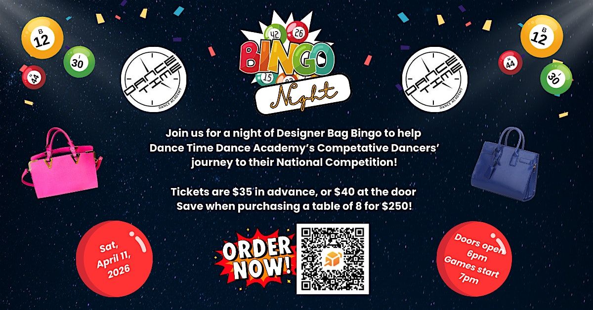 Get ready for a fun-filled evening in person with the Parents of DTDA Dancers! Come play bingo and win some amazing designer bags while supporting a great cause. Bring your friends, enjoy the vibes, and let's make unforgettable memories together. Don’t miss out on the excitement and good times!