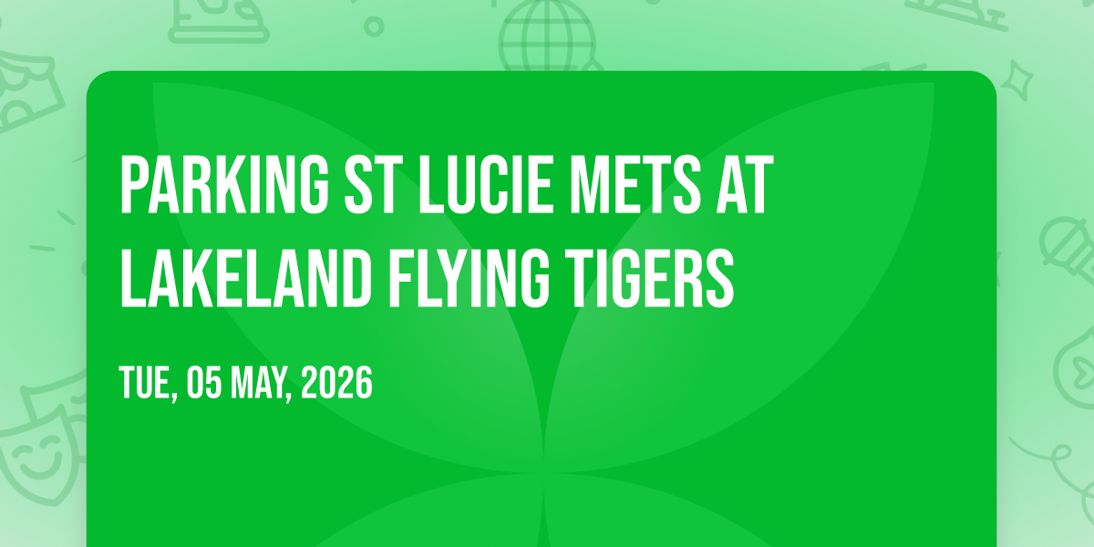 π Location: 28.0745, -81.951π Welcome to Parking St Lucie Mets at Lakeland Flying Tigers, where the impossible becomes possible and dreams take flight! ποΈ Join us at Publix Field at Joker Marchant Stadium in the heart of Lakeland, FL for an event that will redefine your expectations. π On May 10th, 2026 at 04:00 PM, witness the transformation of space and time into something truly magical. β¨ It's a curated experience combining the best of innovation, entertainment, and community spirit, creating moments that will be remembered for years to come. Whether you're a first-time visitor or a seasoned enthusiast, prepare to be amazed. π Book now to ensure your place in this unforgettable experience!
