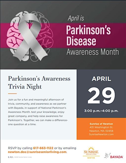 Join us for a fun and meaningful afternoon of trivia, community, and awareness as we partner with Bayada, in support of National Parkinson's Awareness Month. Test your knowledge, enjoy great company, and help raise awareness for Parkinson's. Together, we can make a difference-one question at a time.