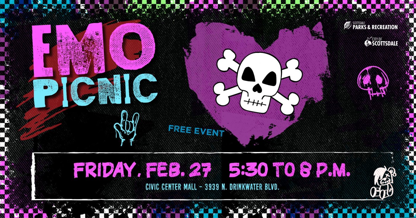 Get ready to feel all the nostalgia at Emo Picnic—a bold, one-of-a-kind community event celebrating emo music, throwback vibes, and unapologetic feelings. Join us Thursday, February 27th, from 5:30–8:00 PM at the Civic Center for a FREE live concert, immersive emo-themed activities, and an electric evening atmosphere. Grab your friends, bring the vibes, and relive the anthems that defined a generation at this can’t-miss experience.